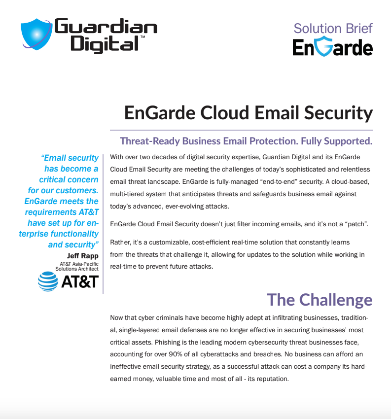 Guardian Digital EnGarde Cloud Email Security makes email safe for business with threat-ready, fully supported email vigilance.