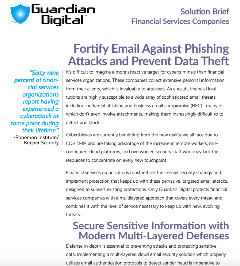 Guardian Digital EnGarde Cloud Email Security Protects Financial Services Companies from Emerging Threats