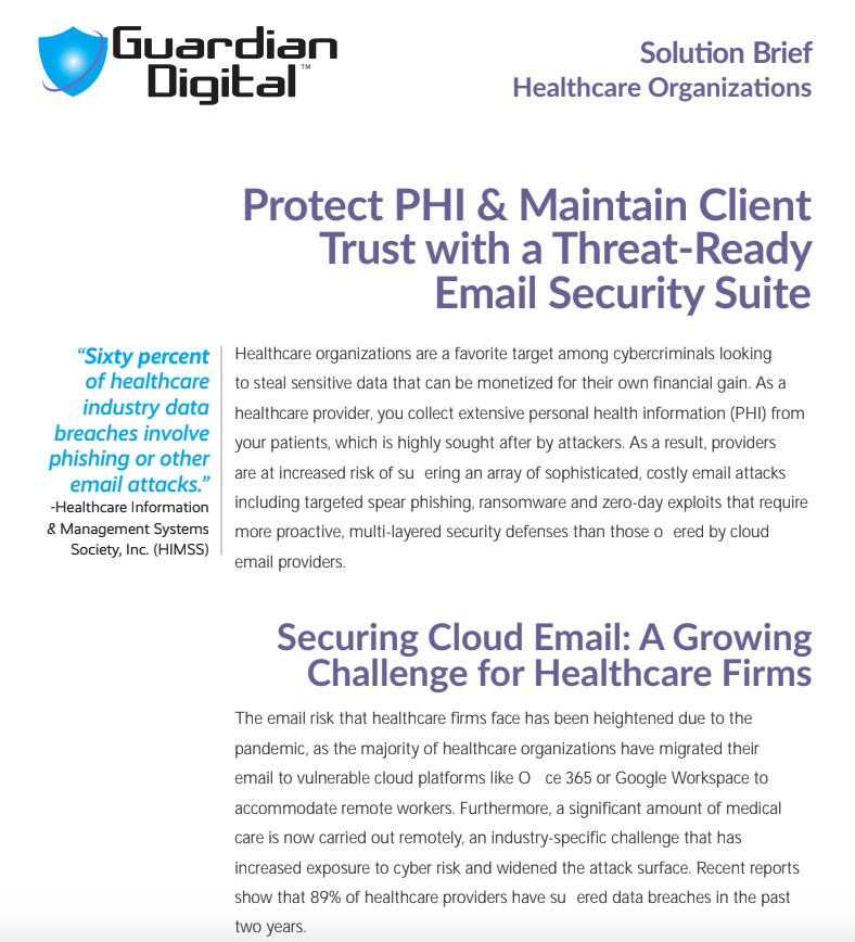 Healthcare Organizations: Protect PHI & Maintain Client Trust with a Threat-Ready Email Security Suite